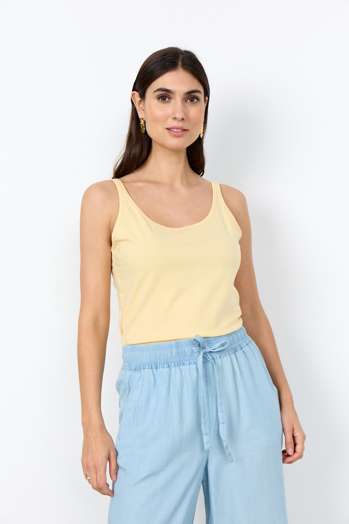 SC-Pylle 122 ist eines von Soyas Lieblingsoberteilen. Er kommt in angenehmer Mischqualität mit Stretch-Effekt. Das Top hat ein schlichtes und puristisches Design, was es zu einem Must-have in jedem Kleiderschrank macht.Trageb Sie es als Unterhemd oder einfach nur alleine mit einem schönen Rock an warmen Sommertagen.